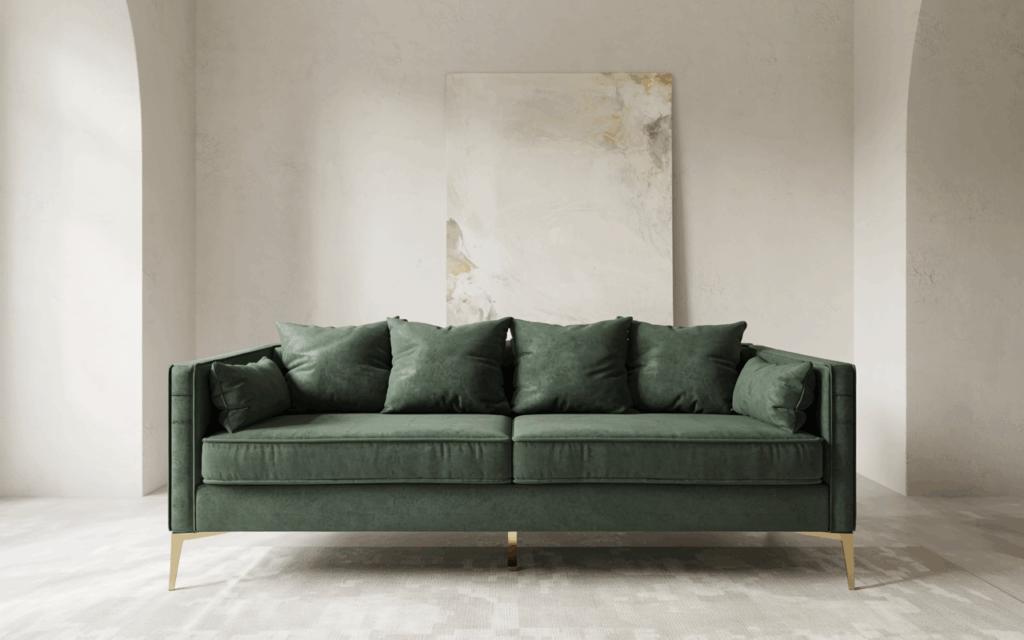 ספה מודרנית ומעוצבת דגם מישל, בעיצוב נקי וקלאסי. כוללת כריות נוי תואמות. רגלי מתכת דקות ואלגנטיות. מושלמת לסלון מעוצב. ריפוד איכותי ונוח. זמינה במגוון צבעים.